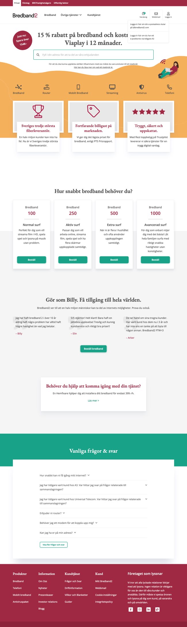 - Delivering a visually modern, accessible, and user-centric website that elevated Bredband2's brand perception