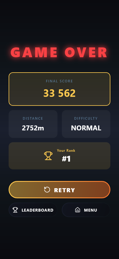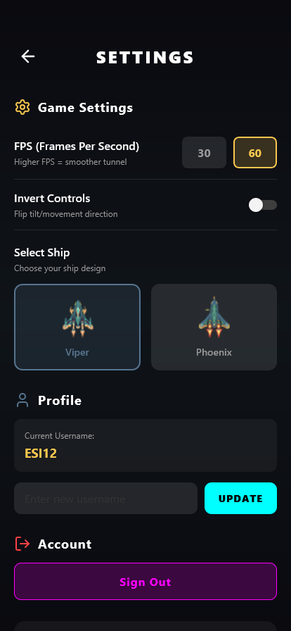 Real collision detection, accelerometer-based steering, unlockable ships, power-ups and enemies, endless looping gameplay, and live online leaderboards. The tunnel scrolls smoothly at 60 FPS with zero loading delays. -